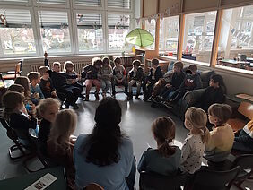 Begeistert empfingen die Schülerinnen und Schüler der Klassen ihre Vorleser. Neugierig lauschten sie den vielen Geschichten aus tollen Büchern.